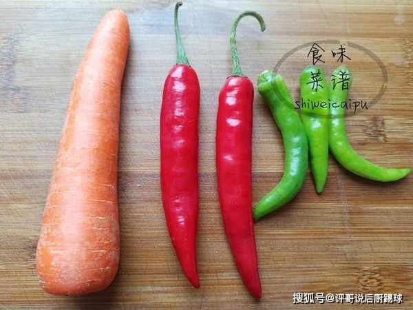 1、准备食材,土豆、胡萝卜、辣椒,刮掉外皮,清洗干净,分别切好备用。