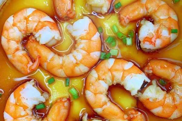 5、将虾仁摆放在蒸好的鸡蛋羹上,继续蒸五分钟。最后淋上蒸鱼豉油,撒上葱花即可上桌开吃。