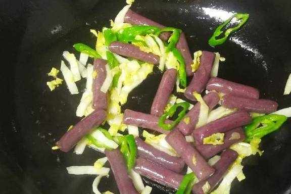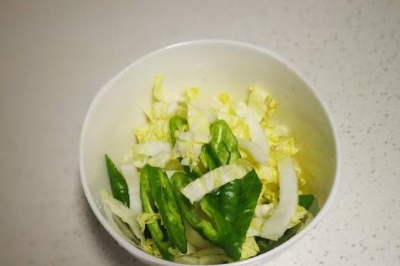 回家后,搭配了娃娃菜和辣椒,简单的做法,用几分钟就做出来了,孩子特别爱吃。