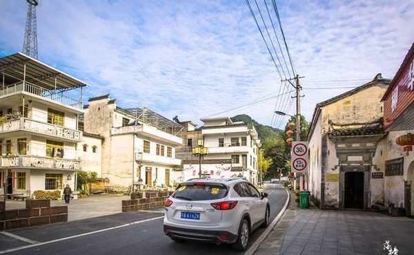 平坦的柏油路一直延伸到远方。路的一边是方方正正的现代建筑,一边是白墙黑瓦的徽派老房子。