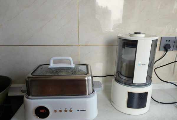 将电蒸锅调至“蒸”程序,定时10分钟。这个锅是全自动的,时间到后自动停止。