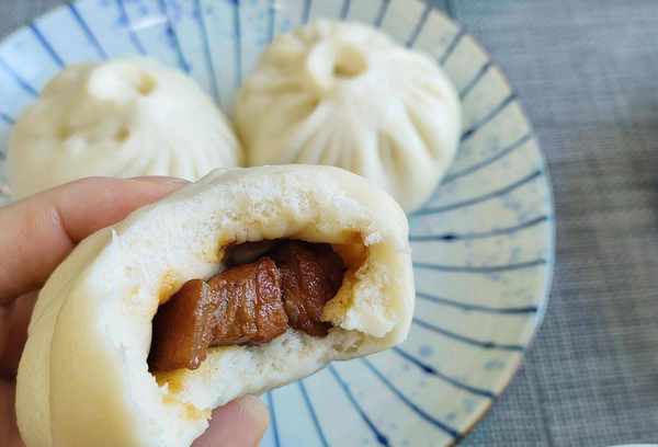 红烧肉包是前一天晚上做的,所以早上蒸就好了。