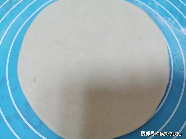 7、我们先拿出一个面剂进行操作,剩下的用保鲜膜盖上,防止风干,把面剂揉圆,擀成一个圆饼。