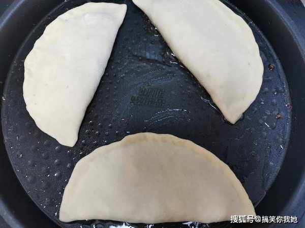 9、把圆饼像这样折起来,封口处捏严,这样一个生胚就做好了,剩下的面剂一样操作即可。