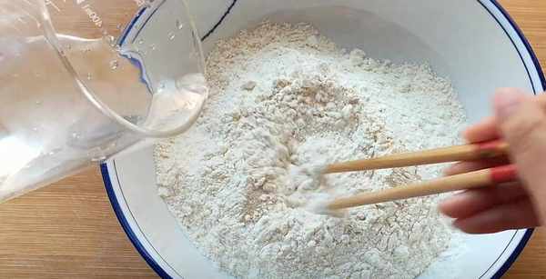 1.300克面粉放入盆中,加入酵母3克,用250毫升温水和面,一边倒一边搅拌,先把酵母化开。