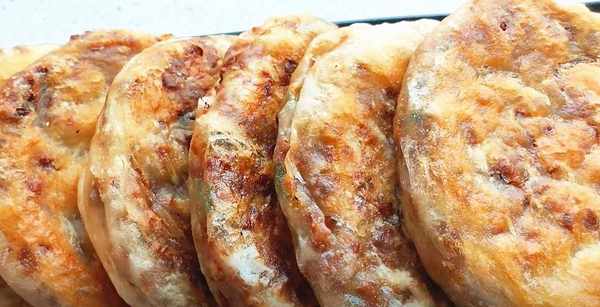 2.里面的馅料是熟的,只要把表面的面皮烙熟即可,时间不用太长。
