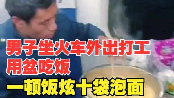 随着饭点的临近,车厢里的人都在开始吃饭了,大哥也准备吃方便面了,然而他接下来的举动成功地吸引了大家的注意力,原来他为了泡方便面竟然拿出了一个大不锈钢盆。