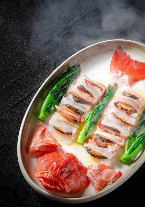 ..黑松露鲜虾糯米酿鱼嘴..