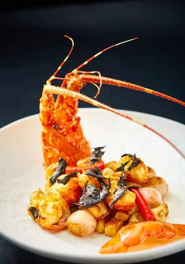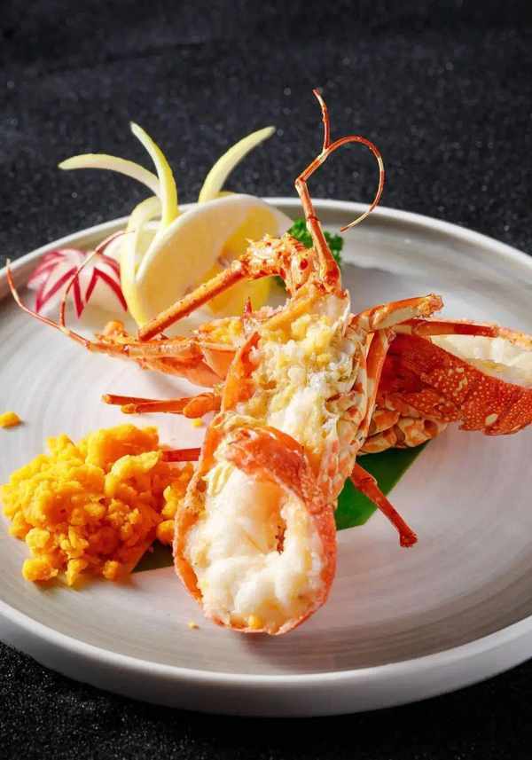 ..烤龙虾配海胆沙拉酱..