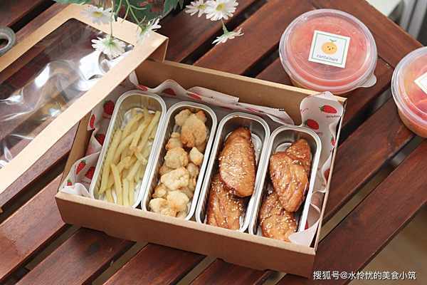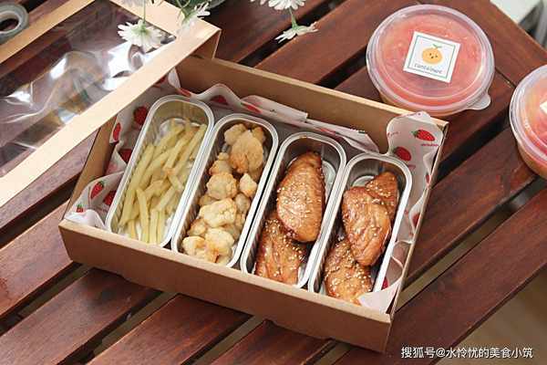 野餐盒可以搭配任意喜欢的美食,薯条、鸡米花比较简单方便,鸡块、薯饼之类的也是非常赞的呢!