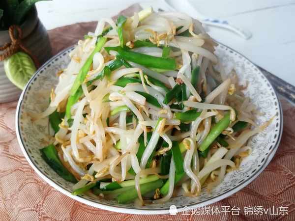 豆芽250克、韭菜200克、蒜米3粒、食盐一勺。
