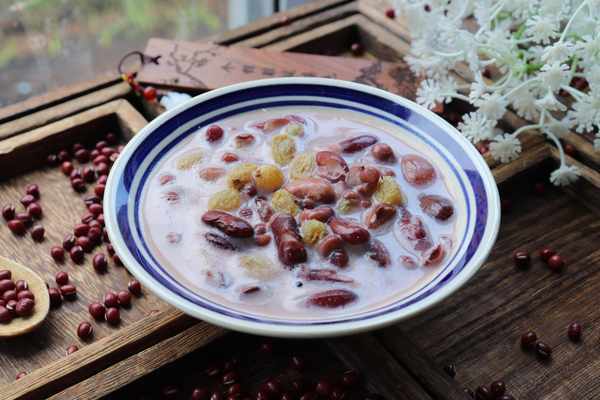 5.煮至酵母变浓稠,豆子软烂。倒入一盒牛奶和一把葡萄干