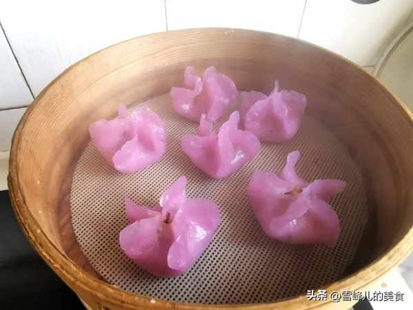 第十二步:春天做一款桃花蒸饺真的好看好吃,尤其馅料更是鲜美无比,比饺子更诱人。