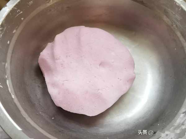 第三步:把澄粉和土豆淀粉称重加入10克玉米油,再趁热放入紫甘蓝汁,和成软硬适中的面团。