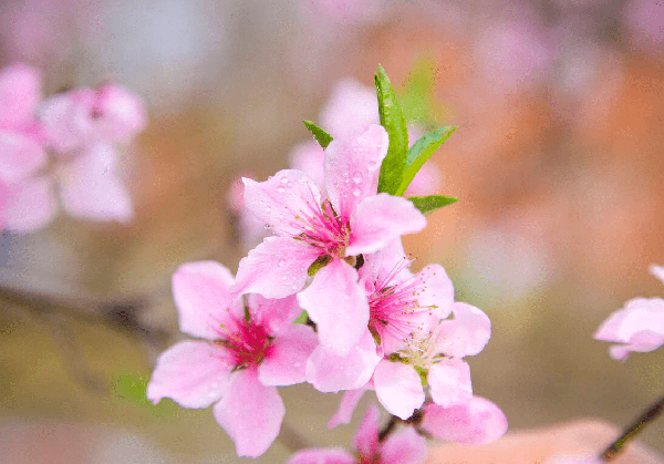 桃花可以说是春季第一花,颜色为粉红色,不仅可供观赏,而且还是一味良药,在古代就已将桃花作为食材食用。新鲜的桃花可制成桃花茶、桃花酒、桃花酱、桃花粥等,适量食用能润泽肌肤,改善血液循环,顺气消食。