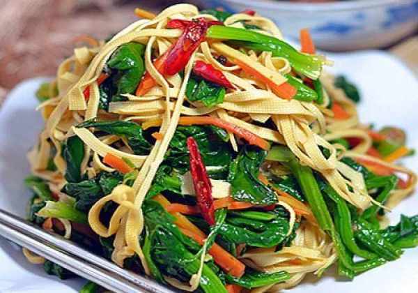 在你的菠菜沙拉中加入一些粉丝或豆腐皮,味道一样美味!