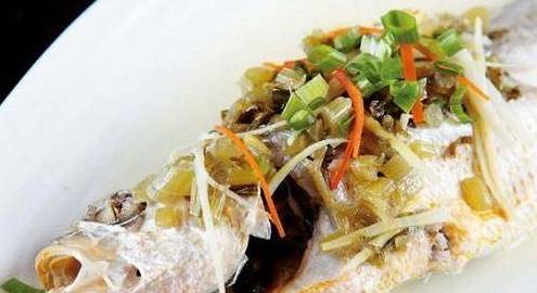 雪菜大黄鱼,又称大汤黄鱼,是富有宁波地方特色的名菜。大黄鱼肉嫩味鲜少骨,自古有“琐碎金鳞软玉膏”之誉。雪里蕻咸菜,质地脆嫩,鲜美可口,有一种特殊的鲜香味。以这两种为主料烧制的雪菜大黄鱼,具有鱼肉嫩,菜香浓,清口鲜洁。