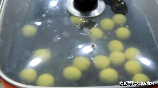 下面,我们把丸子煮熟,锅内烧水, 水烧开以后 ,下入红薯丸子。