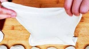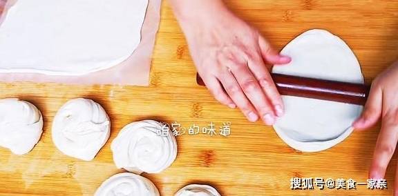 5.全部做好之后还是从第一个饼胚开始做,擀成圆形薄饼。因为第一个剂子最早做,延展性已经饧好,擀的时候不容易回缩。