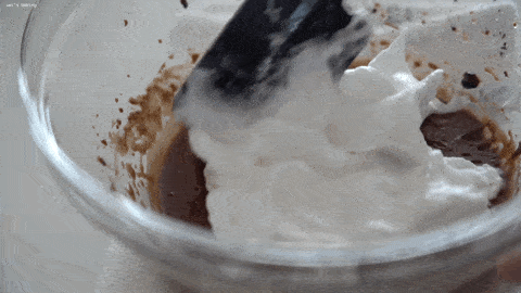 分两次将蛋白霜加到面糊中,每次都充分拌匀