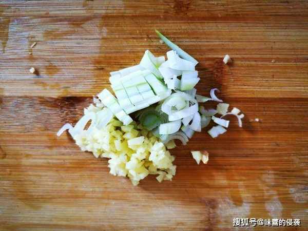4、我们来切一点生姜末和葱末备用。