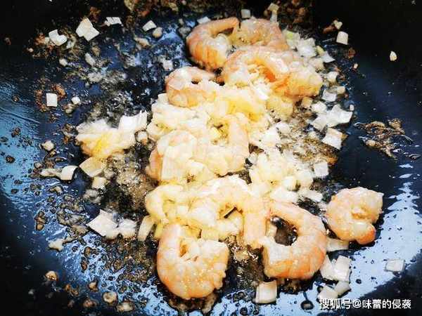 5、炒锅预热好,之后倒入食用油,放入腌制好的虾仁快速翻炒,放入姜末和葱末炒出香味。