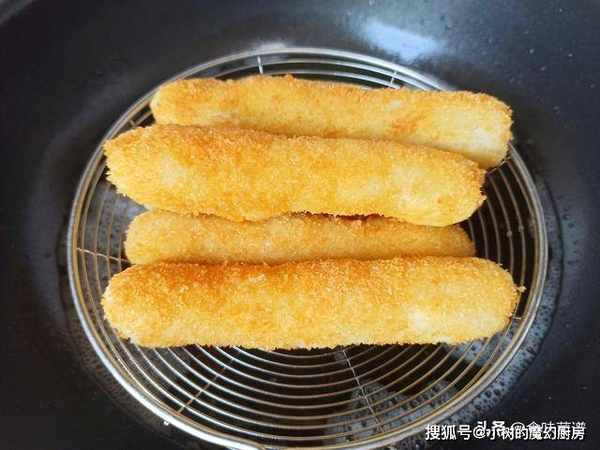 10、等到炸糕全部浮起来,两面呈金黄色,把火关到最小火,即可出锅。