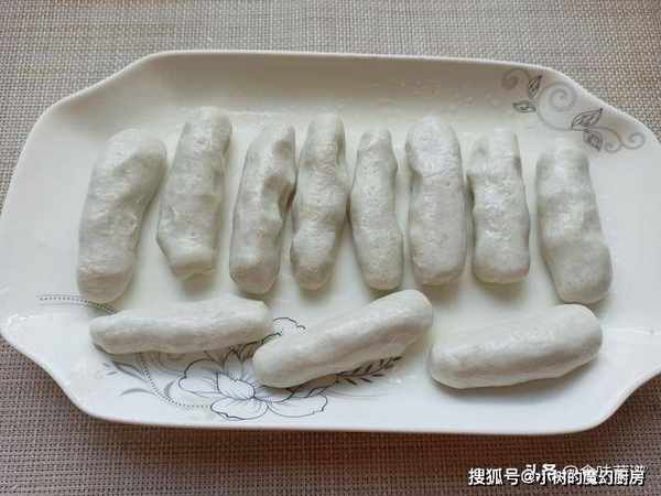5、在手上抹点油,在盘子上也抹点油,防止过于粘连,把面团搓成自己喜欢的形状,长条状或者小圆球都可以。