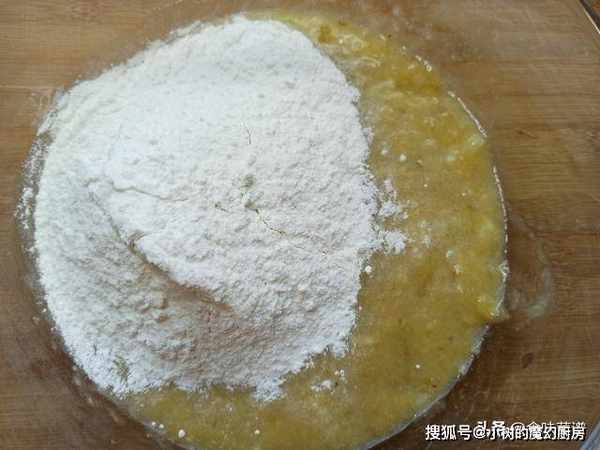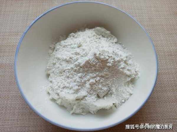 4、芋头本身会有一些黏性,如果家中的芋头水分大,还要加点糯米粉进去,一直搅到没有干粉,成团即可。