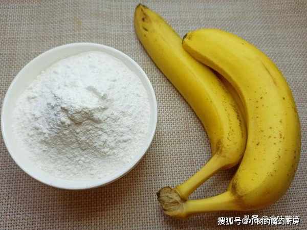 1、准备两根新鲜的香蕉,半碗糯米粉。