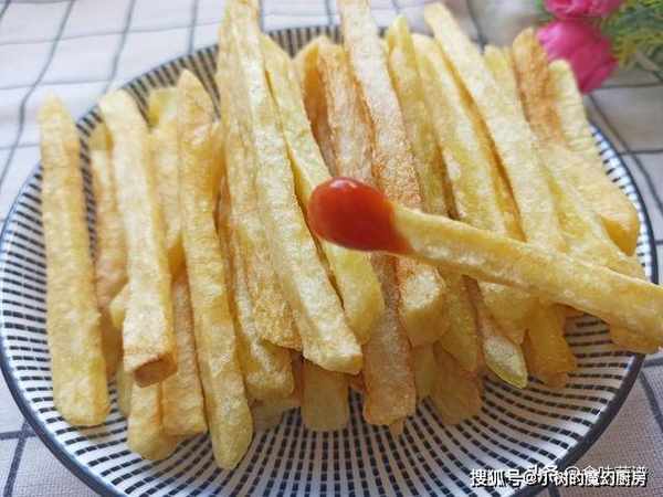 7、一道好吃的炸薯条就做好了,色泽金黄,表皮酥脆,蘸一蘸番茄酱,小朋友们最爱吃了,喜欢的朋友动手试一试。