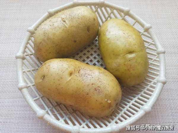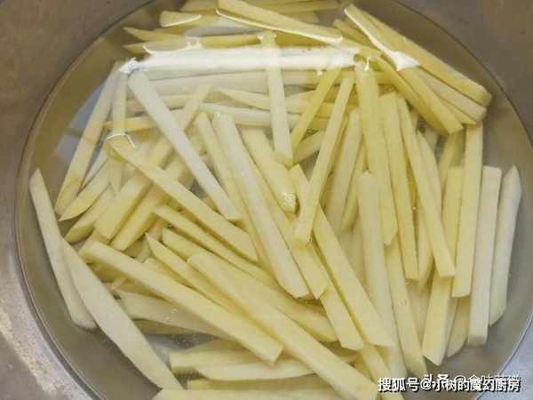 1、准备3个洗净的土豆,削去外皮后,把土豆切成片,因为要做成薯条的样子,建议切厚一些,再切成均等的长条,放入清水中浸泡,泡出里面的淀粉。