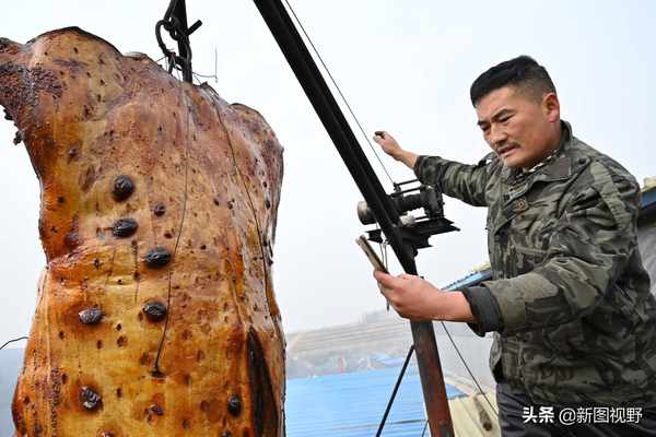 “我做的‘烤全猪’,用的都是300斤左右的大猪,而且都是现杀的。不用电击,直接屠宰,这种技术是‘非物质文化遗产’,俺师傅是省级非遗传承人。我以前曾经试验过用电击屠宰的冷鲜肉烤过,但是那个味道差了不少,少了猪肉的鲜香味。”杨善星介绍,现场屠宰生猪,猪身体内的血水流出得比较干净,所以猪肉的自然香味就比较浓郁。