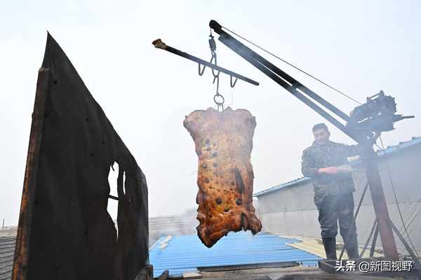 “今天早上,我三点多起来的。这头大猪我养了一年多了,有三百多斤。他们点名要头大的,我就把这头烤了。”杨善星说,自己家里猪圈里还有几十头大猪,都是为了留着年前烤猪用的。因为现在农村散户养猪的比较少,找一头不肥不瘦的猪,还是比较困难的。“烤全猪”,不能用老母猪,也不能用年龄太大的公猪,一年左右的“未婚”大猪,是“烤全猪”最好的选择。