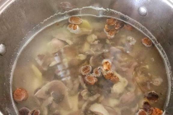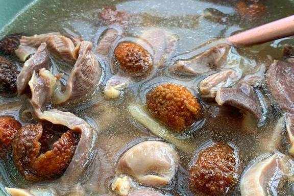 第五步:清水下锅,再下姜片、胡椒粉、春砂仁和鸡杂大火煮沸后再煮15分钟,转中火继续煮5分钟,加入适量水盐和生抽调味即可。