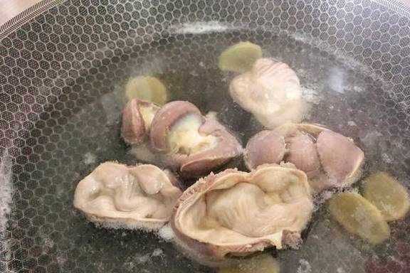 第三步:清水下锅,调至大火将它煮沸,下3片姜片、2勺料酒,再下鸡杂炒水一遍,捞起沥干水分备用。