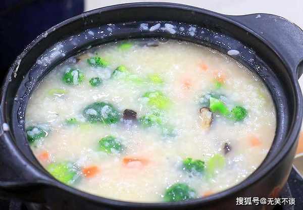 6.8分钟以后米粥已经熬得非常绵香,把虾仁、香菇、西兰花和胡萝卜倒入锅中,煮至米粥再次沸腾转为小火,加入食盐3克、胡椒粉2克继续熬制,食材全部煮熟以后即可关火上桌,这道浓郁鲜香的虾粥就做好了。