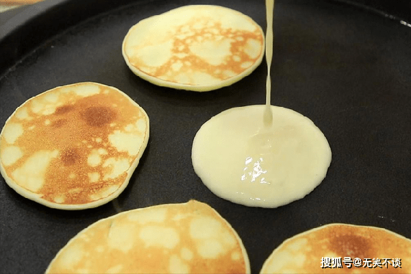 2.把电饼铛烧热不用刷油,挖一勺酸奶糊倒入锅中,摊成薄厚均匀的圆形小饼,保持小火烙2分钟,酸奶糊全部定型以后翻面,翻过来之后再烙1分钟,另一面也呈金黄色时即可出锅。