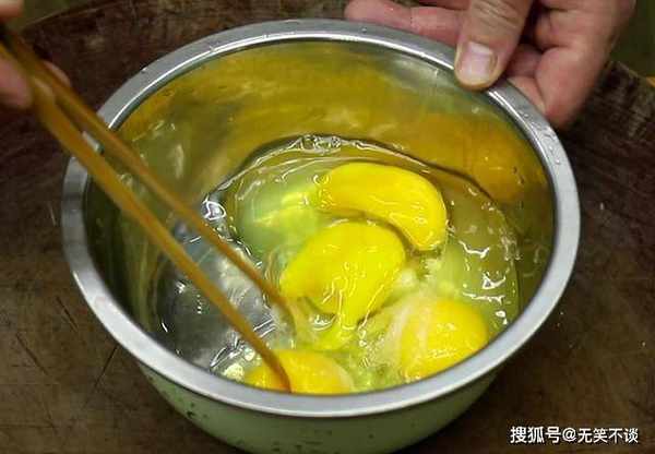 1.准备几根小葱,切成葱花放入盆中备用;碗中打入四个鸡蛋,用筷子把鸡蛋打散 让蛋清和蛋黄均匀融合。