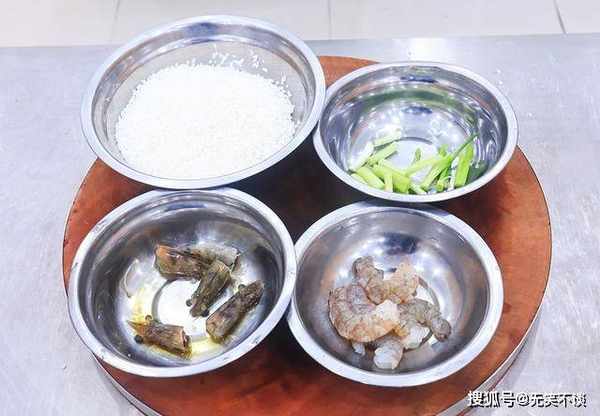 1.准备适量的大米,用清水淘洗几遍,把上面的灰尘和杂质洗干净,倒出来沥干水分,放入冰箱中冷冻2小时。准备几只鲜虾,剪去虾须、虾腿,把虾头剪下来放在一边备用,剥出虾仁,用牙签挑出虾线。