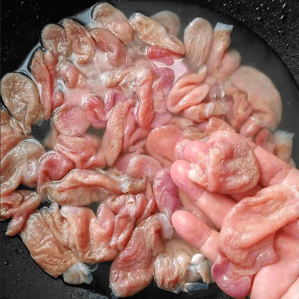 1.先将安康鱼肚的内外反复多冲洗几遍,因为安康鱼肚内可能会有寄生虫,所以清洗时一定要仔细。清洗干净的安康鱼肚放入大碗中,然后加入适量的料酒和葱段、姜片腌制15~20分钟,目的是去腥。