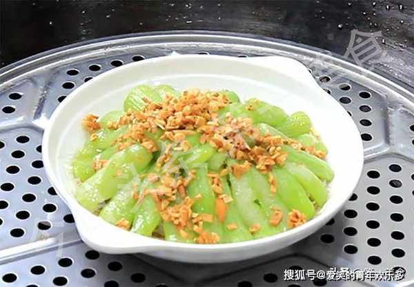 最后锅内再次烧油,等到油温七成热时,把热油浇在葱丝和青红椒丝上面激发出香味,一道味道鲜美的蒜蓉粉丝蒸丝瓜就做好了。
