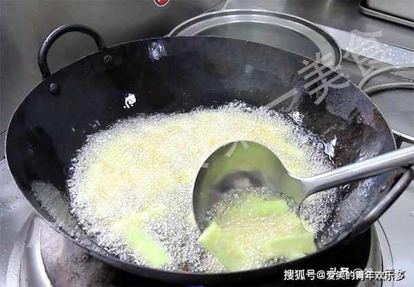 锅内烧油,油温四成热时放入丝瓜,中小火炸1分钟左右,倒出丝瓜控油备用。