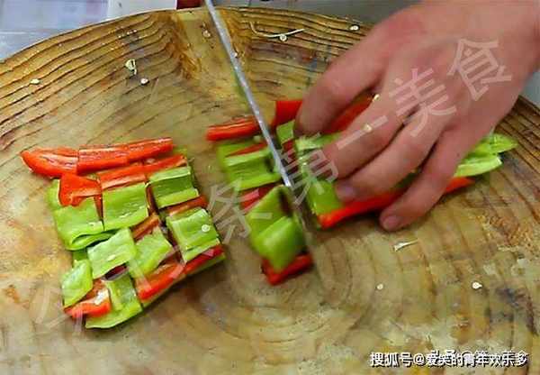 ,先切成条再切成1厘米大小的方丁放入盆中,