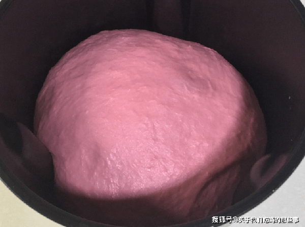 2、面团包上保鲜膜,放在温暖的地方发酵2小时,变成2倍大后即可取出,加干粉揉一会儿,揉光滑,用刀切开后无气泡就行了。