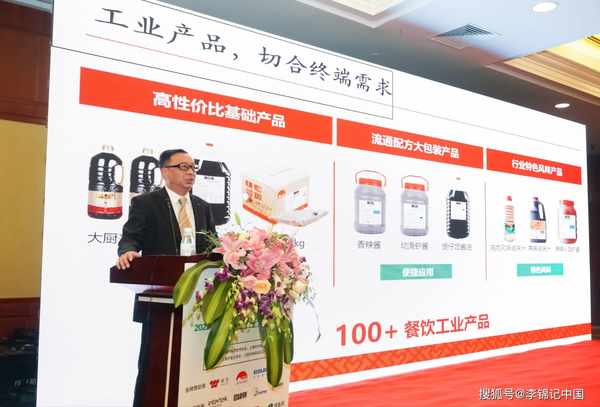 在当天的专题论坛上,李锦记(中国)销售有限公司专业餐饮客户运营中心-全国专业餐饮客户发展高级经理陈纪庆,分享了《李锦记创新产品及助力餐食工业化发展》的报告。李锦记自1888年创立以来,从一家小茶寮发展成拥有200多种产品、远销100多个国家和地区的跨国酱料集团,正是秉承“永远创业精神”,不断迎合消费者与市场需求推陈出新。