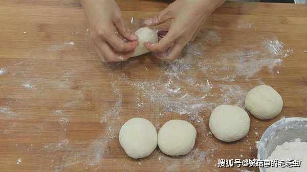 刚和好的面团不醒发一会不好整形,容易出现面团拉伸又回缩的情况。面团醒发好以后,取出放在案板上面搓揉一会。把面团揉光滑,切成一个一个的小面剂子。