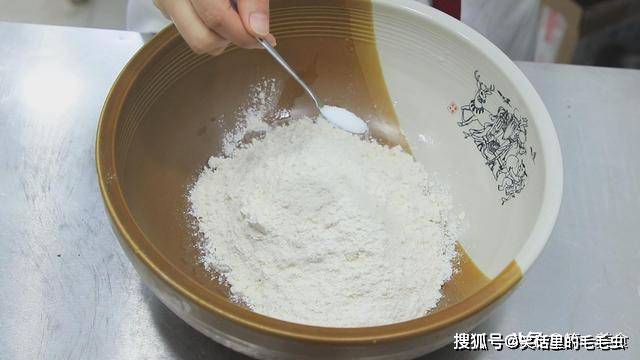 准备一个小盆,倒入普通面粉200克,加入食盐2克,倒入开水用筷子搅成面絮 。加入一点食盐使烙馍做出来口感更筋。