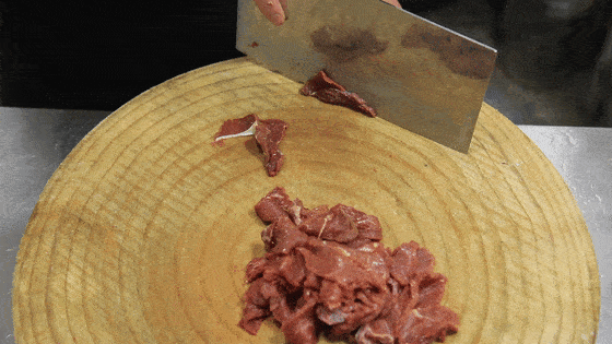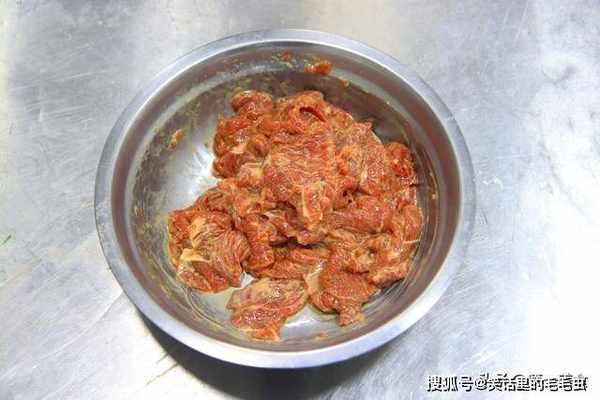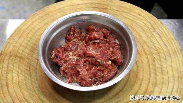 我们先准备好一块牛肉,当然最好是选用牛里脊肉,毕竟肉质更加鲜嫩。然后我们把牛肉上的白色筋膜去除,然后顶着牛肉的纹理,切成均匀薄片,然后放入盆中,准备下一步腌制。