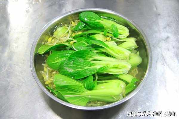 准备新鲜的黄豆芽200克以及上海青几颗,把上海青从根部切成四半,连同黄豆芽一起放入清水中。把黄豆芽中杂质浸泡出来的同时,我们也要把上海青根部的泥沙彻底清洗干净,除掉烂叶和杂质留以备用。